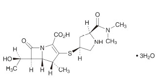 | 2 | 名称 | (4R,5S,6S)-3-[(3S,5S)-5-(Dimethylcarbamoyl)pyrrolidin-3-ylsulfanyl]-6-[(1R)-1-hydroxyethyl]-4-methyl-7-oxo-1-azabicyclo[3.2.0]hept-2-ene-2-carboxylic acid trihydrate |